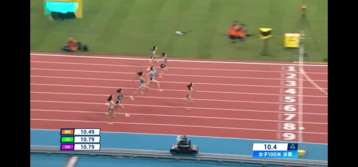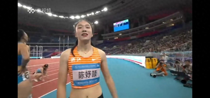 陈妤颉率先通过终点,成绩是11秒10。以11秒37获得银牌的韦永丽跪倒在赛道上哭泣,大家都去安慰她。安徽新锐史琳琪出人意料地以11秒38获得铜牌。